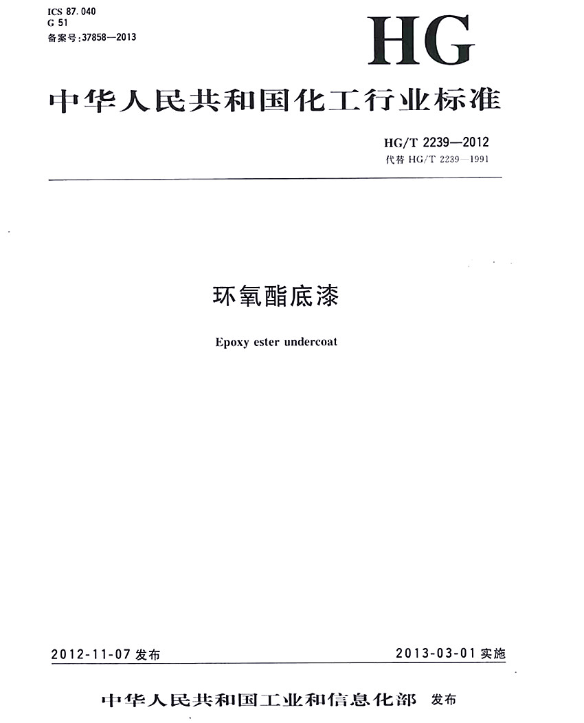 HG/T 2239-2012環(huán)氧酯底漆標準代替HG/T 2239-1991是小編摘自HG/T 2239-2012《環(huán)氧酯底漆》紙質版,更多防腐涂料執(zhí)行國家標準和行業(yè)標準請參考本網站。