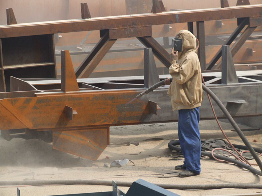 鋼結構用防腐涂料的首要前提是做底材處理,常用的處理方法是打磨噴砂,達到Sa2.5級標準,基材露出白鐵、無油污、無銹跡、無氧化層,只有這樣的底材才能夠確保涂裝質量的優異。